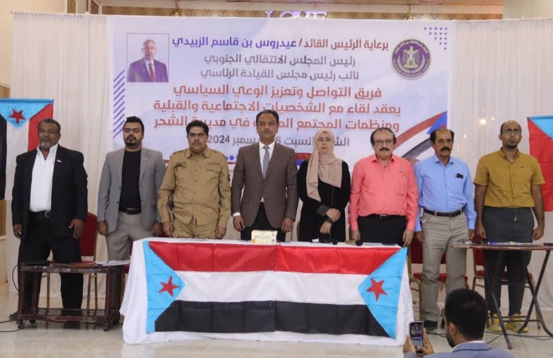 عقد فريق التواصل وتعزيز الوعي السياسي، برئاسة عضو هيئة رئاسة المجلس الانتقالي الجنوبي، الأستاذ فادي حسن باعوم، اليوم السبت، لقاءً موسعاً بالشخصيات الأجتماعية والقبلية ومنظمات المجتمع المدني بمدينة الشحر.