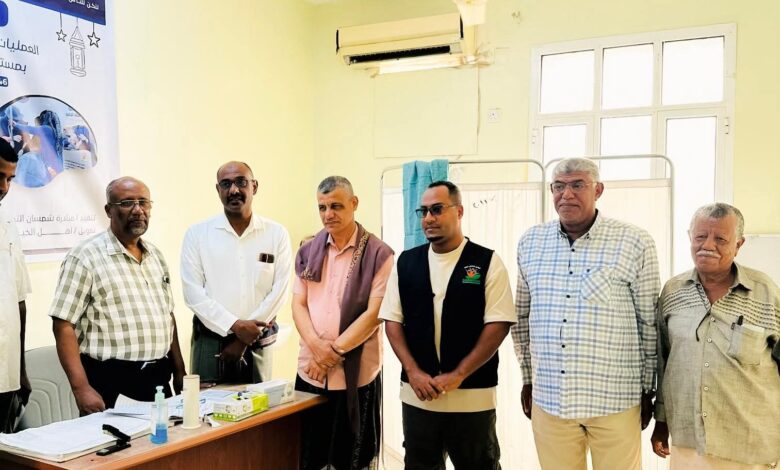 دشن مدير عام مديرية غيل باوزير الأستاذ سالم عبدالله العطيشي باوزير بمعية مدير مكتب الصحة والسكان د. فائز محمد بازار العوبثاني والأستاذ شمسان أحمد بامدحج رئيس مبادرة شمسان التطوعية مشروع العمليات الجراحية الرمضانية بمستشفى غيل باوزير.