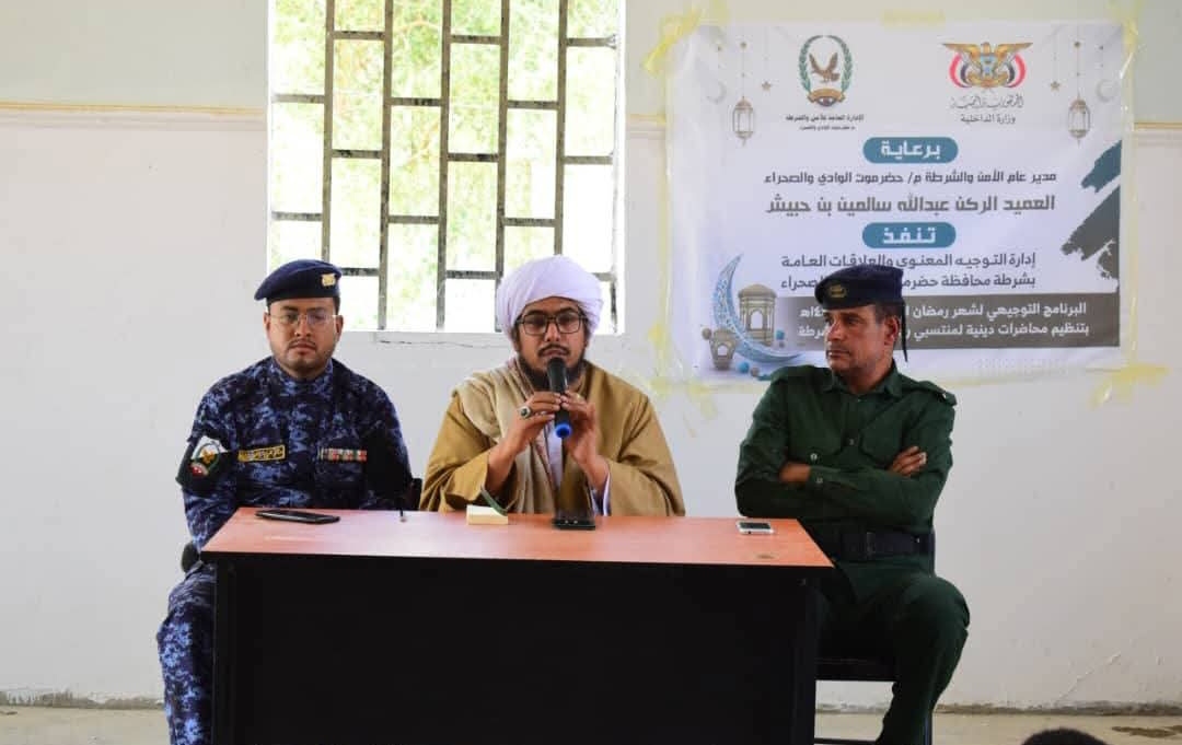 دشنت إدارة التوجيه المعنوي والعلاقات العامة بشرطة محافظة حضرموت الوادي والصحراء اليوم البرنامج التوجيهي لشهر رمضان المبارك، وذلك بتنفيذ محاضرة بعنوان “تجديد الروح الإيمانية”، استهدفت منتسبي شرطة الدوريات وأمن الطرق.