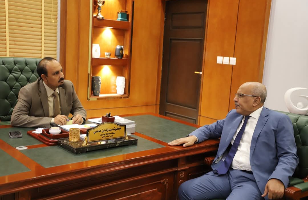 التقى محافظ حضرموت الأستاذ مبخوت مبارك بن ماضي، اليوم بالمكلا، رئيس الجمعية الوطنية للمجلس الانتقالي الجنوبي الأستاذ علي عبدالله الكثيري.