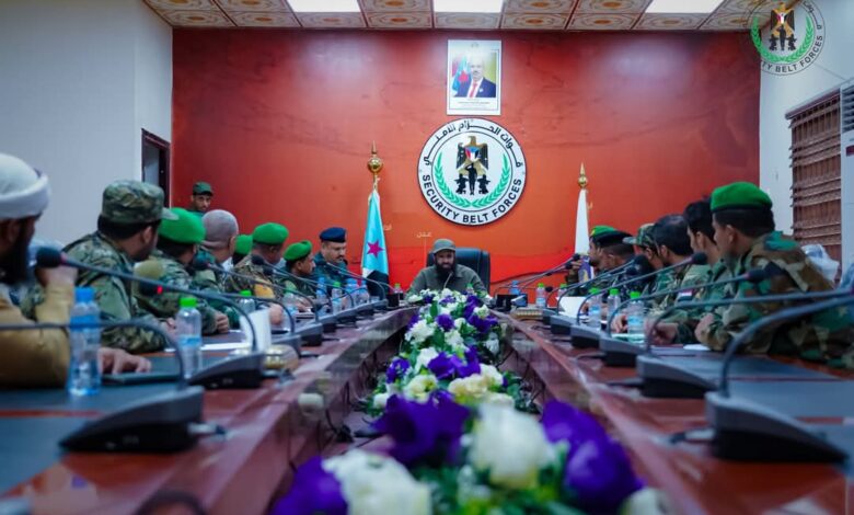 ترأس العميد محسن الوالي، القائد العام لقوات الحزام الأمني، صباح اليوم، اجتماعًا موسعًا ضم قيادة الإدارة العامة للموارد البشرية ومدراء إدارات في الأحزمة الأمنية، وذلك في مقر القيادة العامة بمعسكر الشعب، بحضور العميد عادل الصانبي، مدير الإدارة العامة .