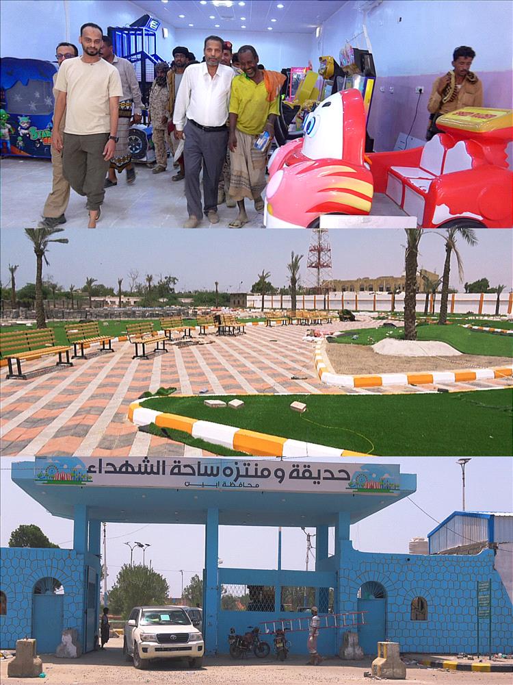 وخلال الزيارة طافا بمباني المسرح وصالة الألعاب وموقع الحديقة الكبرى حيث استحسنوا مستوى الإنجاز الذي تم خلال فترة وجيزة من الزمن واثنوا على مدير عام صندوق النظافة وتحسين المدينة الذي سارع الزمن في إنجاز هذه المشاريع وتجهيزها لفتحها أمام زوار ساحة الشهداء ابين خلال عيد الأضحى المبارك.