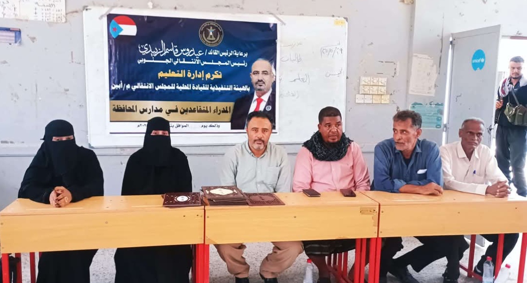 نظّمت إدارة التعليم بالهيئة التنفيذية للقيادة المحلية للمجلس الانتقالي الجنوبي في محافظة أبين، اليوم الثلاثاء، بمدرسة أسماء بنت أبي بكر الصديق، حفلًا تكريمًا لعدد من مديري المدارس المتقاعدين في مدينة زنجبار، برعاية الرئيس القائد عيدروس الزُبيدي.