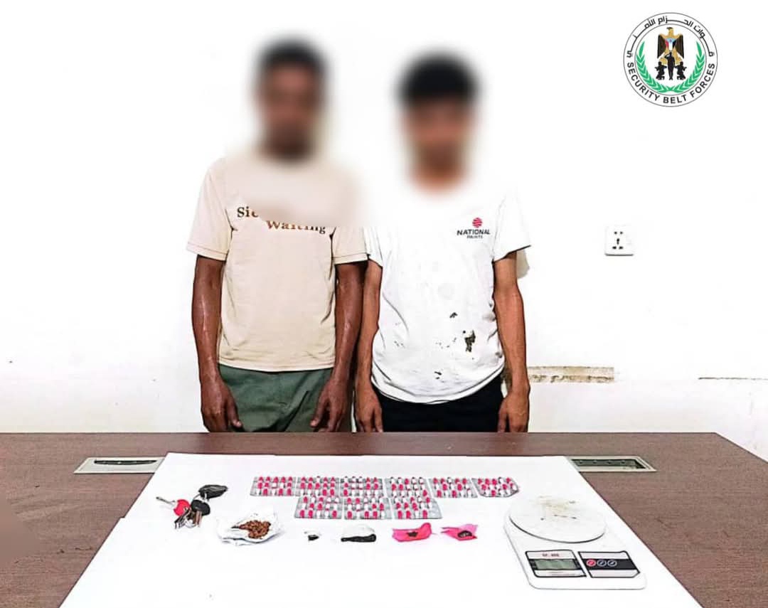 تمكنت قوات الحزام الأمني في العاصمة عدن من ضبط شخصين بتهمة ترويج المخدرات، وذلك خلال عملية أمنية نُفذت في إحدى نقاط التفتيش بالقطاع الأول في مديرية البريقة