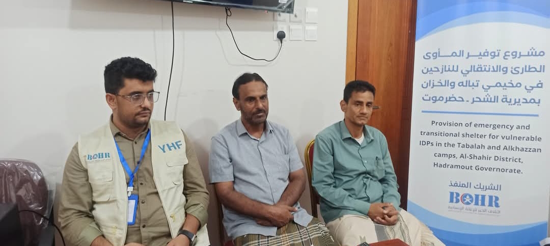 اختتمت اليوم بمدينة الشحر الورشة التعريفية لمشروع توفير المأوى للنازحين في مخيمي تبالة والخزان التي تنفذها ائتلاف الخير للإغاثة الإنسانية (BCHR) ضمن برنامج دعم الفئات الأشد ضعفا والمتأثرة بالنزاعات والفيضانات، بتمويل من صندوق التمويل الإنساني (YHF).