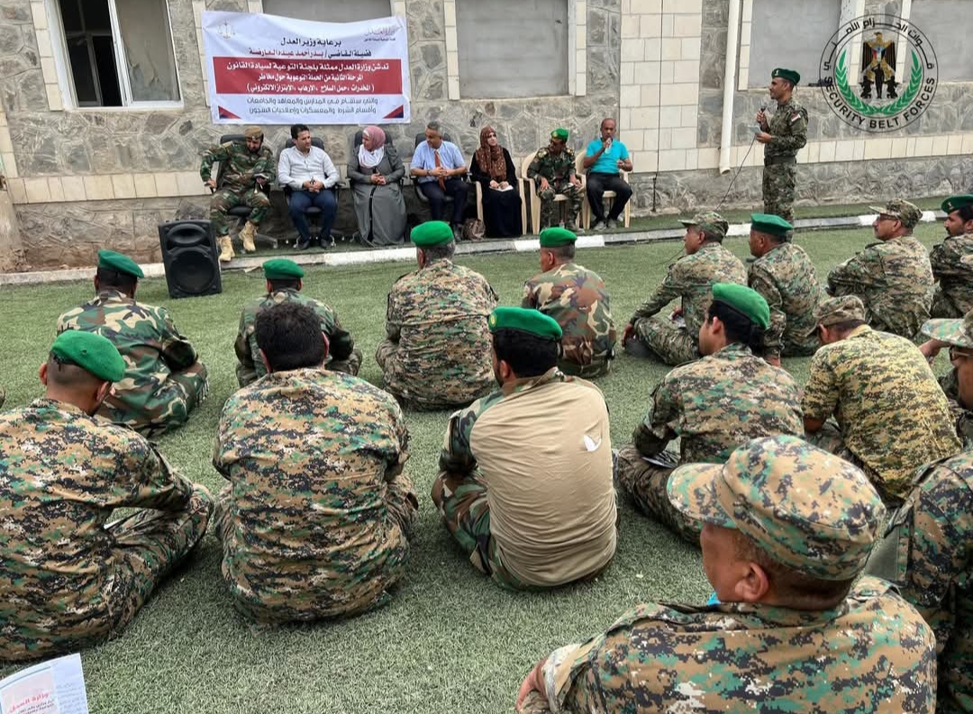 نظّمت لجنة التوعية بسيادة القانون بوزارة العدل، اليوم الأربعاء، سلسلة من المحاضرات القانونية التوعوية لمنتسبي قوات الحزام الأمني في العاصمة عدن، ركزت على عدد من الظواهر المجتمعية الخطيرة وانعكاساتها السلبية على الأمن والاستقرار.