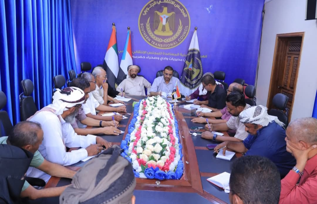 عقدت الهيئة التنفيذية المساعدة للمجلس الانتقالي الجنوبي لشؤون مديريات وادي وصحراء حضرموت، اليوم الأحد، اجتماعها الدوري لشهر أغسطس، برئاسة رئيس الهيئة، محمد عبدالملك الزبيدي، وبحضور نائبه الشيخ كرامة بن سالم بن الصقير.