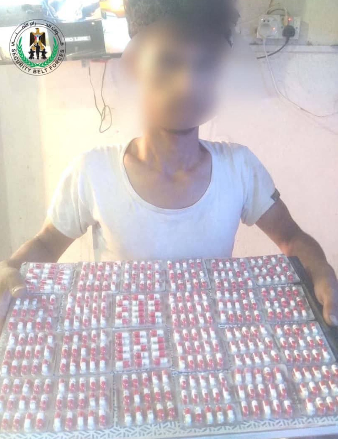 قوات الحزام الأمني بلحج تضبط شخصا وبحوزته كمية من الحبوب المخدرة