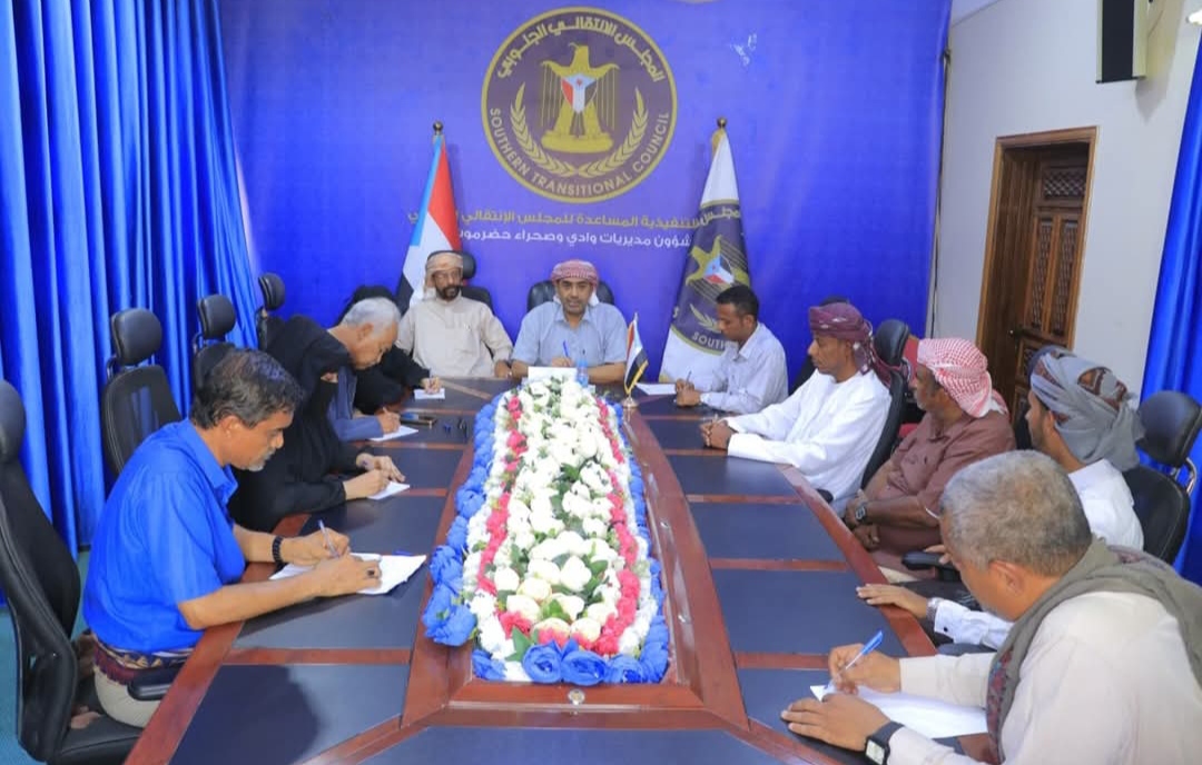 عقدت الهيئة التنفيذية المساعدة للمجلس الانتقالي الجنوبي لشؤون مديريات وادي وصحراء حضرموت، اليوم الأحد، اجتماعها الدوري الثاني لشهر أغسطس، برئاسة رئيس الهيئة، محمد عبدالملك الزبيدي.