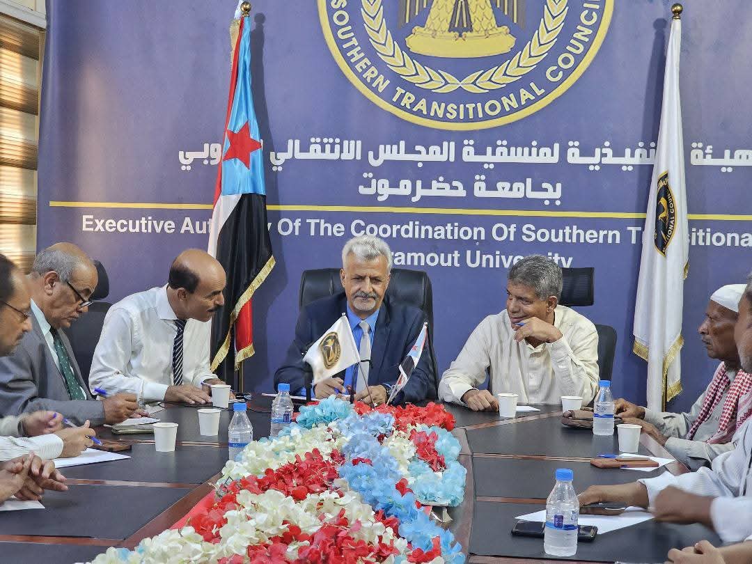 فريق التوجيه والرقابة الرئاسي يدشن أعماله في منسقية الانتقالي بجامعة حضرموت