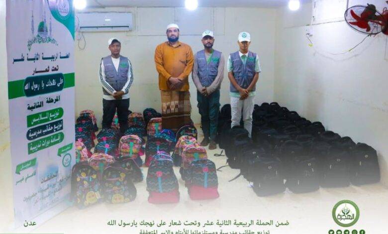 فقد شهدت الحملة خلال الأسبوع الماضي توزيع أكثر من ١٥٠ حقيبة مدرسية للأيتام والأسر المتعففة وكذلك توزيع ملابس المدرسة للبنات بمختلف مديريات العاصمة عدن لتغدو تلك الحقائب رمزاً يحمل بين طياته الأمل والفرح، ويعكس رسالة نبيلة تتجاوز حدود الماديات، لتصل إلى قلوب الصغار وأسرهم، فتغمرهم بالسكينة والبهجة.
