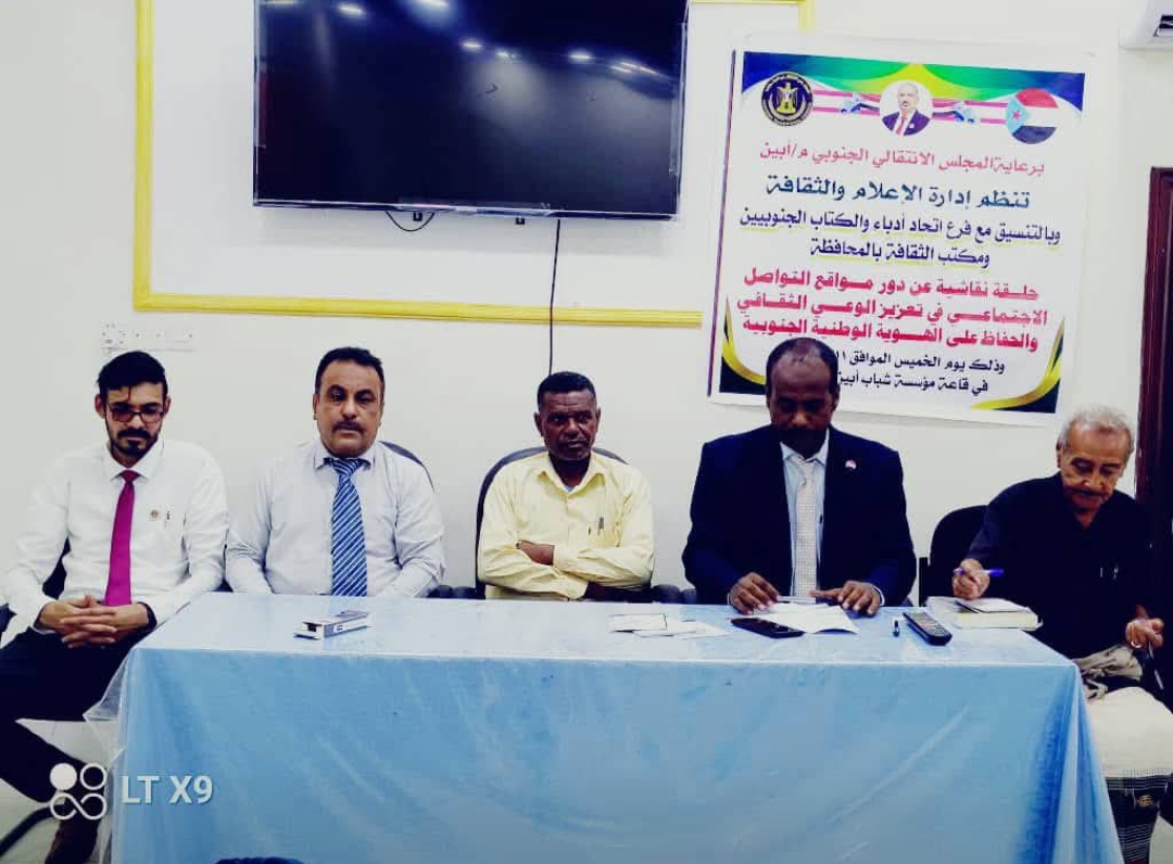 انتقالي أبين ينظّم حلقة نقاشية حول دور مواقع التواصل في تعزيز الهوية الجنوبية