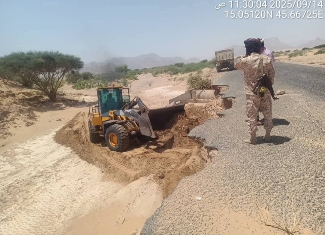 وأفاد المهندس عوض ديمان، مدير فرع المؤسسة بمحافظة شبوة” أن الأعمال تتضمن ردم المواقع المتضررة، ونقل مخلفات السيول، وإنشاء حواجز ترابية بهدف تعديل مجرى السيول، وذلك للحد من تدهور جسم الطريق وضمان استمرارية الحركة المرورية بشكل آمن للمتنقلين.