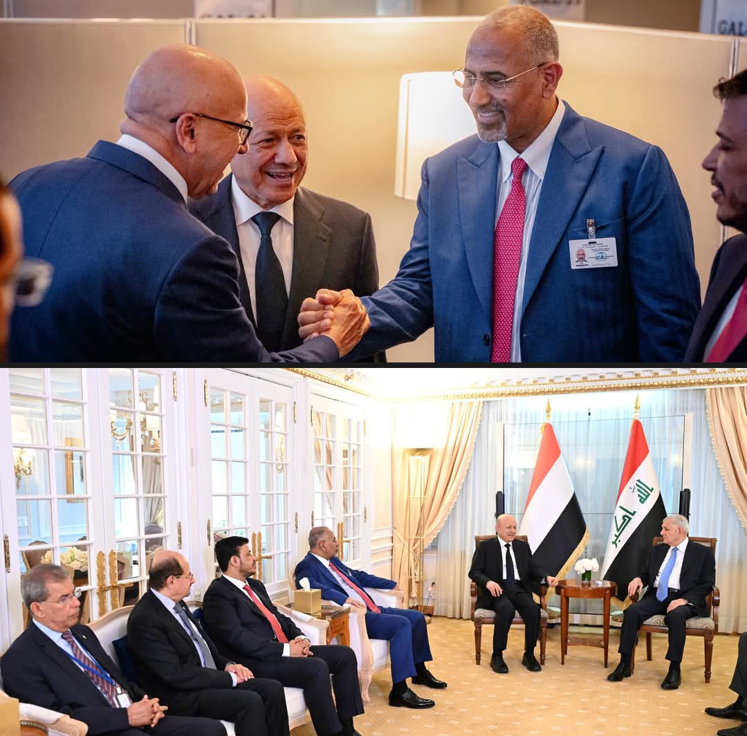 الرئيس الزُبيدي يلتقي ضمن وفد مجلس القيادة الرئاسي رئيس جمهورية العراق ووزير خارجية البحرين