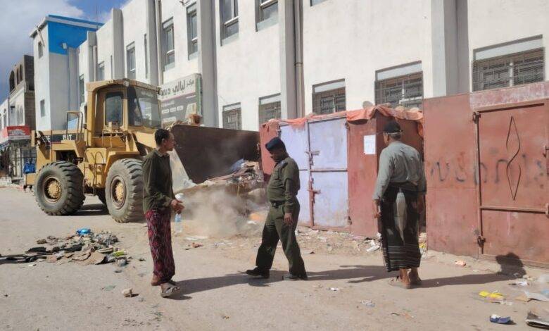مكتب الأشغال العامة بسقطرى ينفذ حملة لإزالة الأكشاك الملاصقة لمجمع الكويت التربوي للبنات