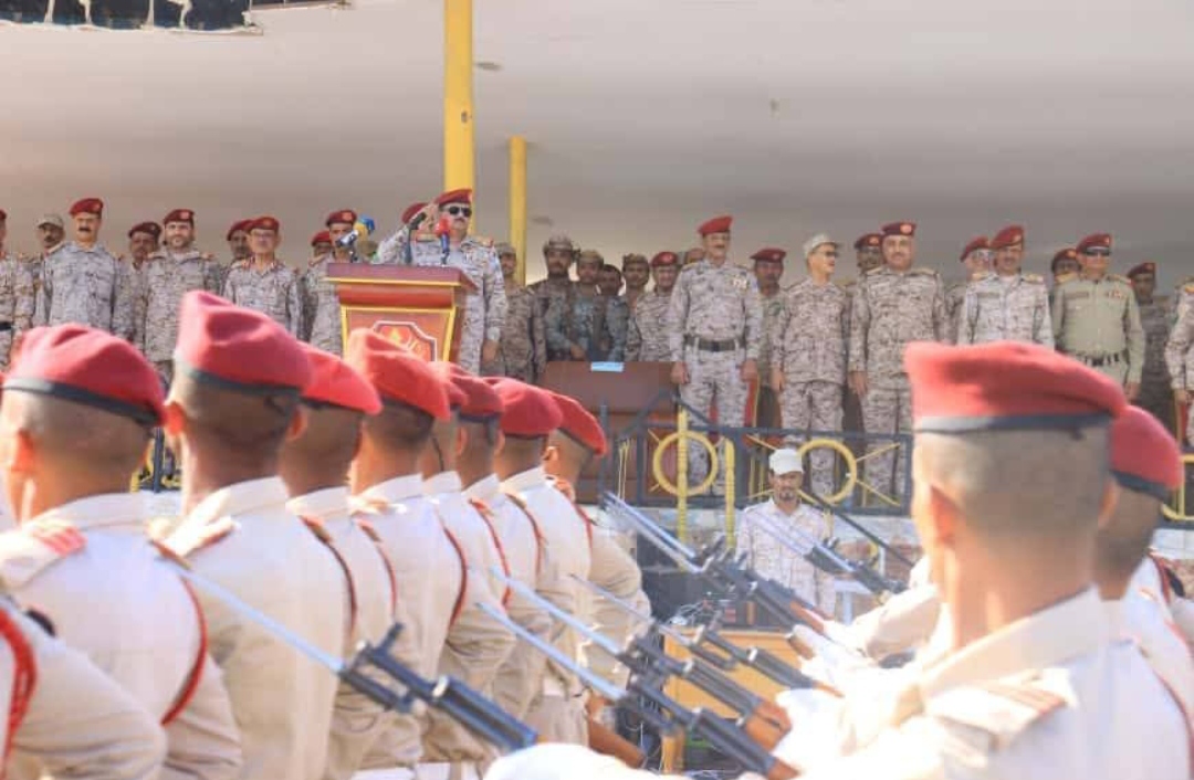 وقال وزير الدفاع “إننا ننأ بالمؤسسة العسكرية عن السياسة والحزبية والعنصرية باعتبارنا جيش الوطن بأكمله ويجب ان نبقى كتلة صلبة لمواجهة التحديات والمهددات المحدقة بالبلد وتحقيق النصر الكبير” مشددا على توحيد الصفوف وتكاتف الجهود لتحقيق آمال شعبنا اليمني بقواته المسلحة لتحقيق الأمن والاستقرار كمقدمة للتنمية والازدهار.