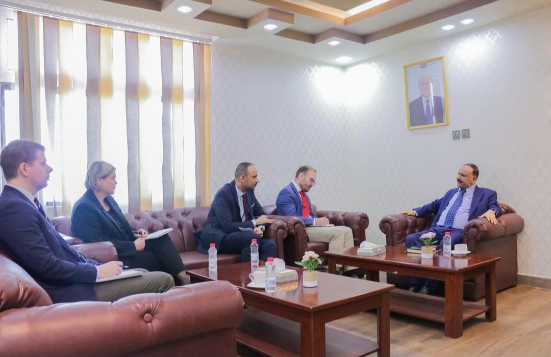 بحث  معالي وزير النقل الدكتور عبدالسلام صالح حُميد، اليوم، في مكتبه بديوان عام الوزارة بالعاصمة عدن، مع المستشار الاقتصادي لمكتب المبعوث الأممي لليمن رديدك جان أو متزجت والوفد المرافق له، الأوضاع الاقتصادية والإنسانية وحركة الملاحة والنقل.