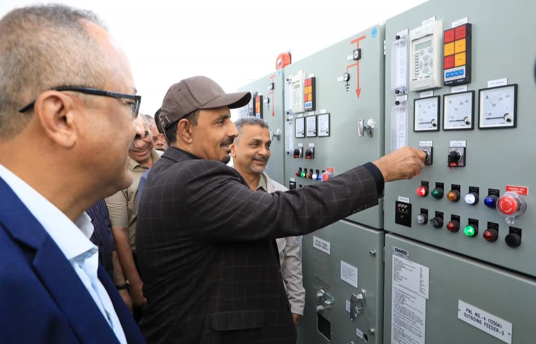 محافظ حضرموت يُدشّن مشاريعًا كهربائية حيوية بقدرة 61.5 ميجافولت أمبير لتخفيف الأحمال وتحسين الخدمة بمديرية المكلا