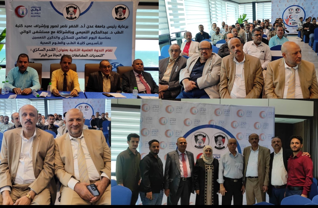 بحضور مدير عام مستشفى الوالي، الأستاذ سالم الوالي، نظمت كلية الطب بالشراكة مع مستشفى الوالي النموذجي في العاصمة عدن اليوم الندوة العلمية الثانية بمناسبة اليوم العالمي للسكري، بعنوان: “القدم السكري: التحديات والمضاعفات وسبل النجاة من البتر”، وذلك في إطار الاحتفال بالذكرى الخمسين لتأسيس كلية الطب، وتحت رعاية رئيس جامعة عدن الأستاذ الدكتور الخضر لصور وإشراف عميد كلية الطب الدكتور عبد الحكيم التميمي.
