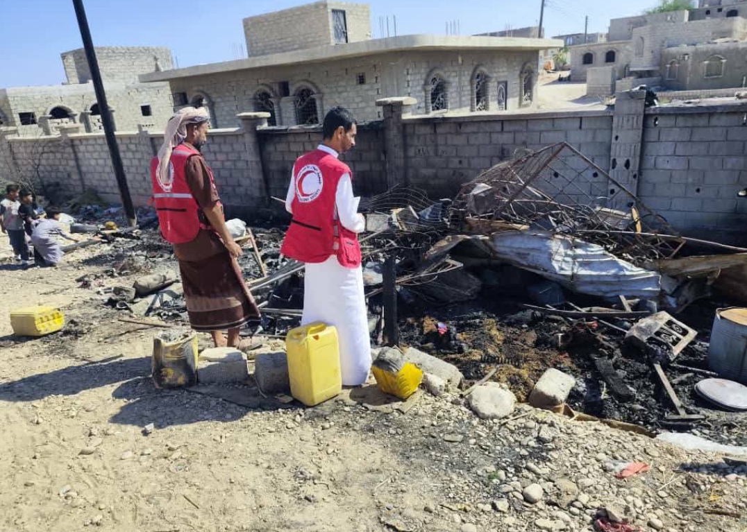 الهلال الأحمر اليمني بالمهرة يتدخل لمساندة أسرتين تضررتا جراء حريق في مدينة الغيضة