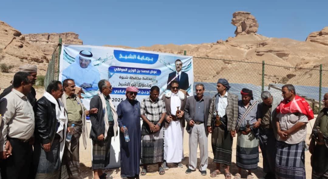 برعاية محافظ محافظة شبوة، رئيس المجلس المحلي، عوض محمد بن الوزير” دشن الأمين العام للمجلس المحلي، عبدربه هشلة ناصر” صباح اليوم، البدء بضخ المياه من البئر الارتوازية الجديدة التي تم حفرها بعمق 550 متراً، لتزويد الأهالي بالمياه بعد سنوات من المعاناة وشح مصادر المياه في المنطقة.