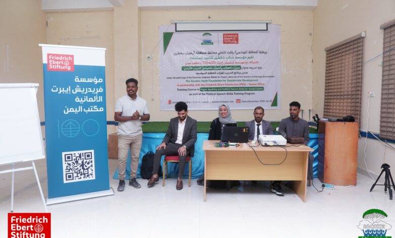 دشّنت مؤسسة فريدريش إيبرت الألمانية، صباح اليوم، وبالشراكة مع مؤسسة شباب سقطرى للتنمية المستدامة، برنامجًا تدريبيًا نوعيًا بعنوان “مهارات الخطابة والخطاب السياسي للشباب القيادي”، وذلك في مديرية حديبو بمحافظة سقطرى، بمشاركة 25 متدربًا ومتدربة من نخبة القيادات الشبابية في المحافظة.