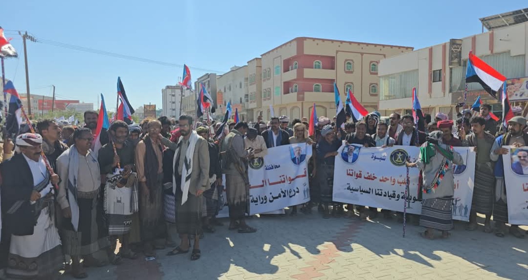 وعبّر أبناء مديرتي نصاب والروضة عن تأييدهم الثابت لمواقف القيادة الجنوبية، مؤكدين أن الجنوب اليوم أقرب من أي وقت مضى لاستعادة دولته بفضل تضحيات أبطاله وثبات شعبه على مبادئه الوطنية، مطالبين الرئيس القائد عيدروس الزُبيدي، باعلان الدولة الجنوبية.