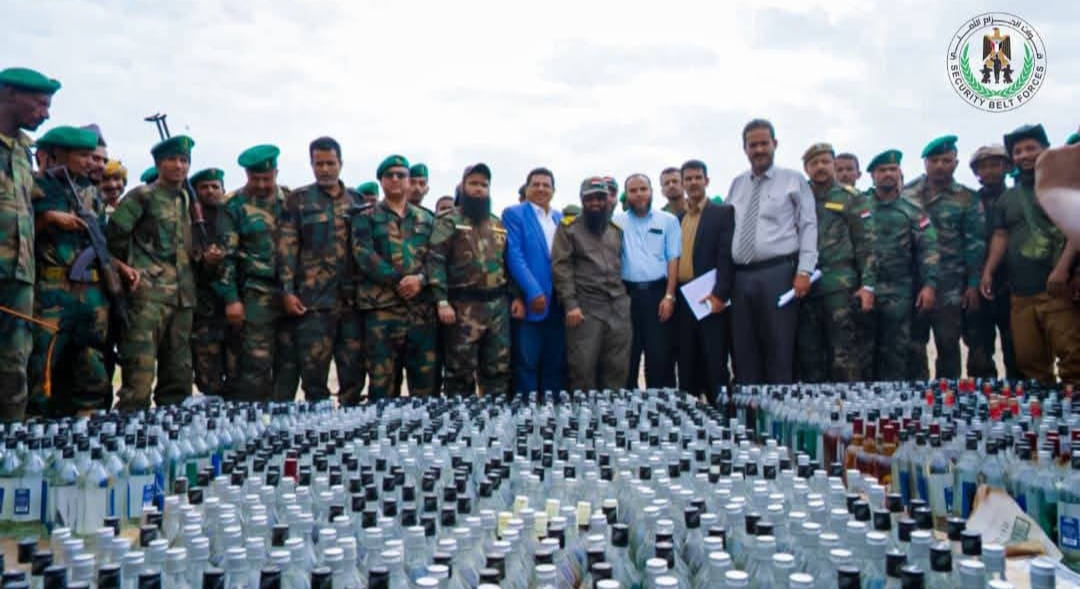 أتلفت الإدارة العامة لمكافحة المخدرات بقوات الحزام الأمني، صباح اليوم، كميات كبيرة من الخمور المستوردة المهربة، عقب ضبطها في عددٍ من العمليات الأمنية، وذلك في إطار الجهود المتواصلة لمكافحة الجريمة بكافة أشكالها والحفاظ على الأمن والسكينة العامة، وبإشراف مباشر من القائد العام لقوات الحزام الأمني، العميد محسن بن عبدالله الوالي.
