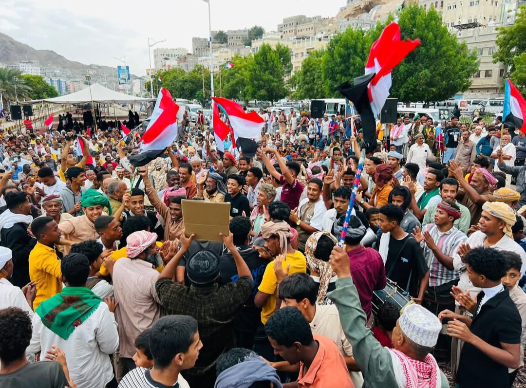 شارك أبناء مدينتي الحامي بمديرية الشحر والديس الشرقية، عصر اليوم الخميس، بمشاركة جماهيرية واسعة في ساحة الاعتصام بالمكلا.