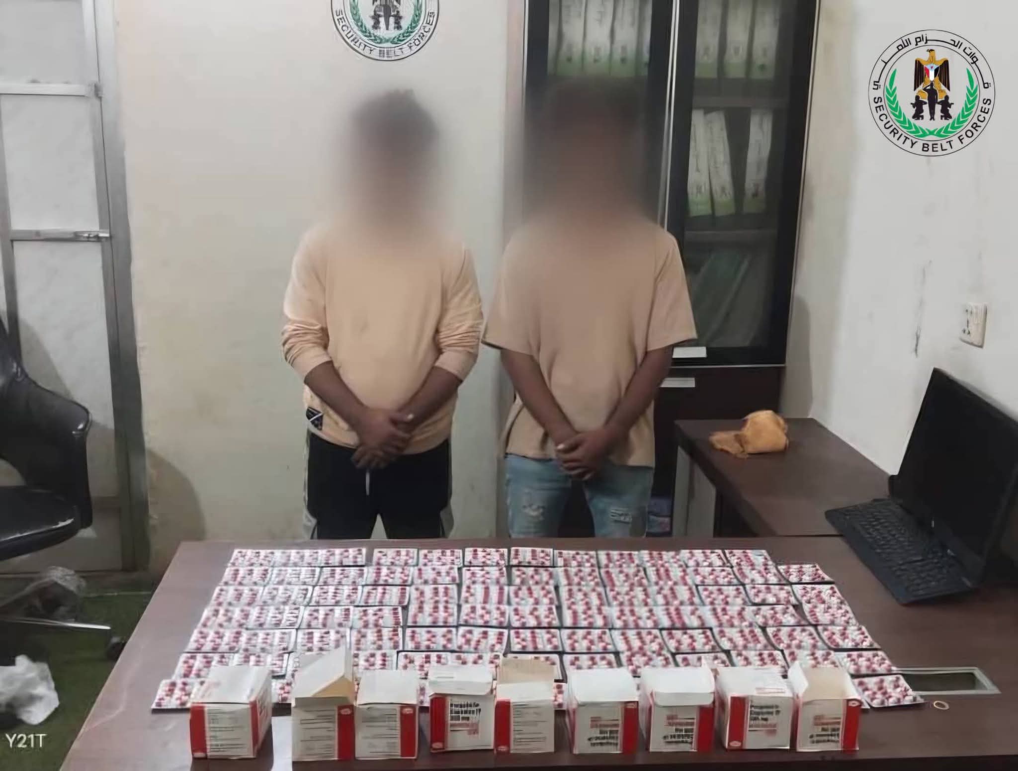 حزام العاصمة عدن يضبط كمية من الحبوب المخدرات ويلقي القبض على متهمين بالبريقة