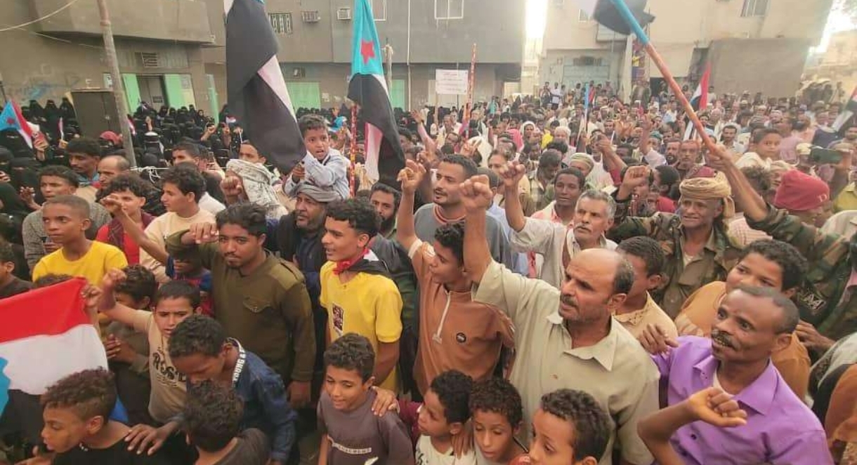 ورفعت الحشود المشاركة أعلام دولة الجنوب العربي ودولة الإمارات العربية المتحدة، وصور الرئيس الزبيدي، وهتافات داعمة لخطوات القيادة السياسية والقوات الحكومية الجنوبية في مواجهة العدوان وتحقيق الاستقلال.