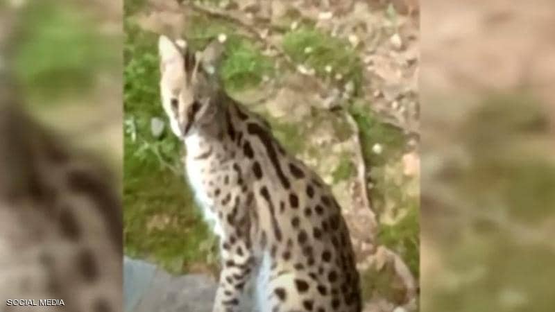 قطة إفريقية ضخمة تفاجئ سيدة في غرفة نومها