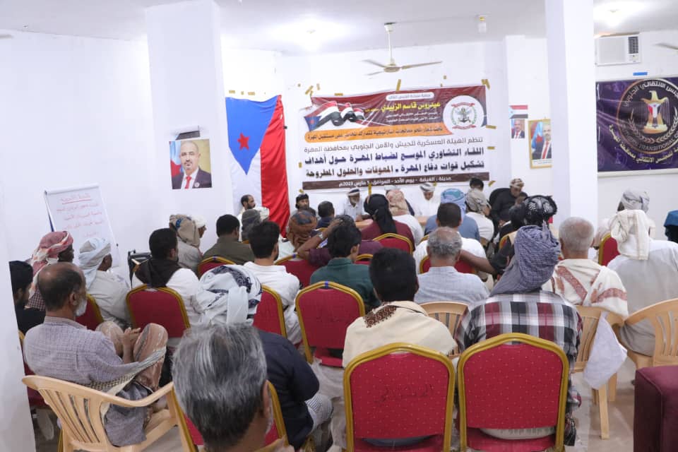 نظمت الهيئة العليا للجيش والأمن الجنوبي بمحافظة المهرة, صباح اليوم اللقاء التشاوري الموسع لضباط المهرة حول تشكيل قوات دفاع المهرة تحت شعار (نحو معالجات استراتيجية تتدارك المخاطر على مستقبل المهرة) وذلك في مدينة الغيضة عاصمة المحافظة. وخلال اللقاء, أكد العقيد مسلم كدة, رئيس الهيئة العليا للجيش والأمن الجنوبي بمحافظة المهرة على أهمية لقاء …