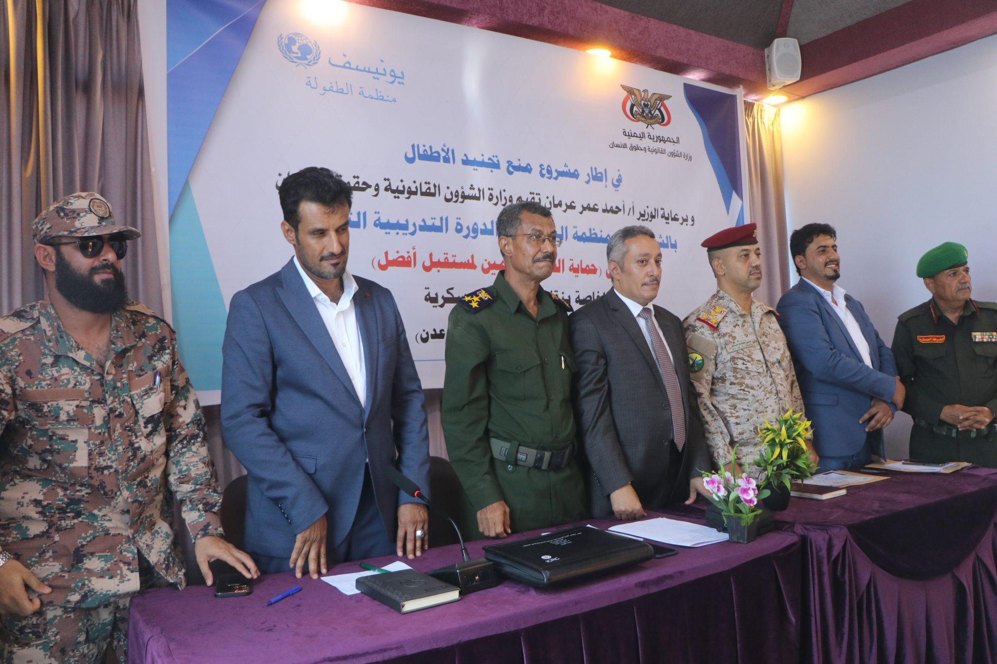 برعاية وزارة الشؤون القانونية وحقوق الانسان..  قوات الحزام الأمني تشارك في دورة تدريبية لمنع تجنيد الأطفال