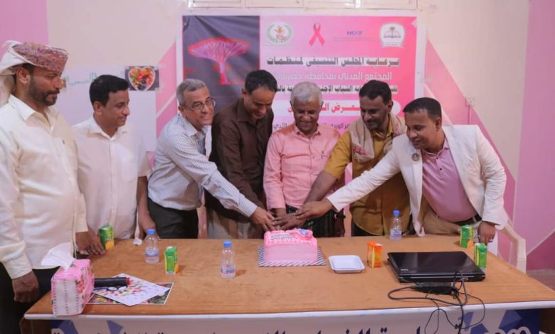 برعاية كريمة من المجلس التنسيقي الأعلى لمنظمات المجتمع المدني بمحافظة حضرموت ، دشن المدير العام لمديرية الشحر الأستاذ عادل أحمد باعكابة و معه نائبه الاستاذ مصبح العبد البحسني ، و الأستاذ رائد محمد باجابر رئيس المجلس التنسيقي الأعلى لمنظمات المجتمع المدني بمحافظة حضرموت و الأستاذ وجدان أحمد صحاليل رئيس جمعية رعاية الشباب و الدكتور عمر الصبان رئيس مؤسسة حضرموت لمكافحة السرطان ( أمل ) مكتب الشحر ، المعرض الخيري المتزامن مع فعاليات الشهر الوردي اكتوبر شهر التوعية بسرطان الثدي ، الذي أقامته جميعة رعاية الشباب الاجتماعية الخيرية بالشراكة مع مؤسسة حضرموت لمكافحة السرطان ” أمل ” مكتب الشحر.