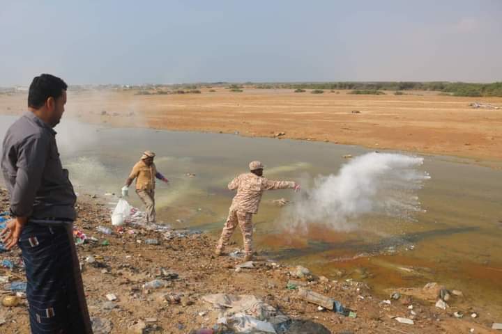 بدأت فرق الطوارئ بقوات خفر السواحل بحضرموت، بتنفيذ المرحلة الأولى من حملة الرش الضبابي، في مديرية الريدة وقصيعر وضواحيها، لإزالة بؤر التوالد والتوعية المجتمعية لمكافحة الأمراض والأوبئه.
