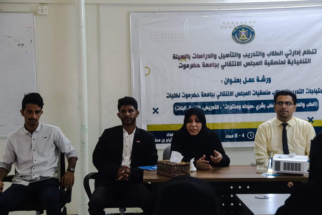 منسقية الانتقالي بجامعة حضرموت تنظم ورشة عمل في “الاحتياجات التدريبية” لأعضاء هيئاتها التنفيذية بكليات الجامعة