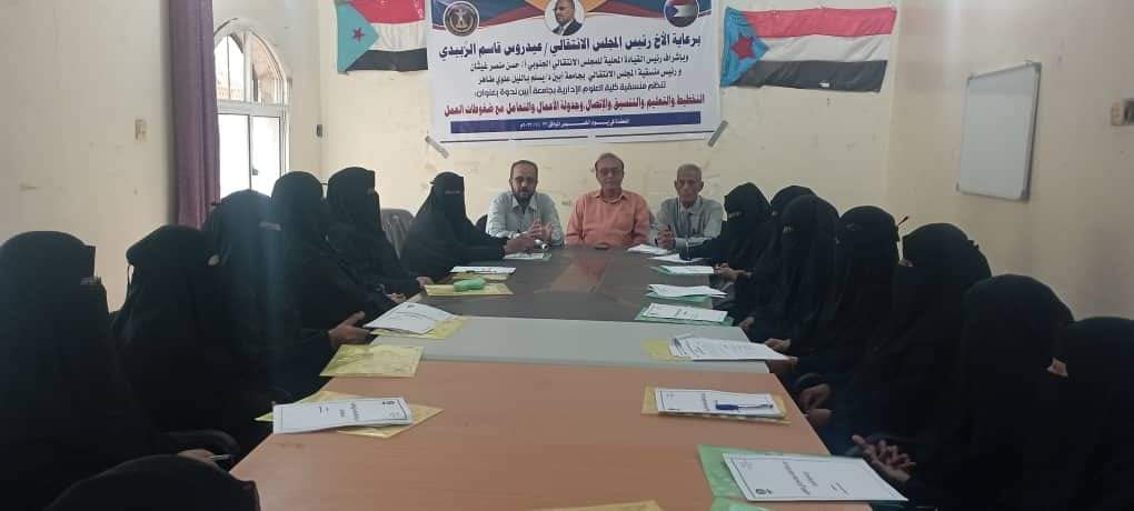 نظمت منسقية الانتقالي في كلية العلوم الإدارية بجامعة أبين، اليوم الخميس، ندوة بعنوان “التخطيط، والتعليم، والتنسيق، والاتصال وجدولة الأعمال والتعامل مع ضغوطات العمل”.