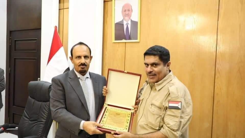 تسلم رئيس الهيئة التنفيذية للقيادة المحلية للمجلس الانتقالي الجنوبي بمحافظة حضرموت، العميد الركن سعيد أحمد المحمدي درعا تكريميا من محافظ المحافظة، مبخوت مبارك بن ماضي، نظير الجهود الاحترازية والإغاثية التي بذلتها الهيئة التنفيذية في التخفيف من أضرار الحالة المدارية تيج، الذي شهدته المحافظة نهاية الشهر الماضي.