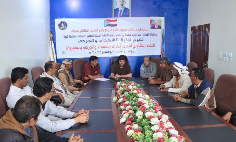 بحضور رئيس انتقالي شبوة.. لقاء تشاوري لإدارات الشهداء والجرحى بمديريات المحافظة