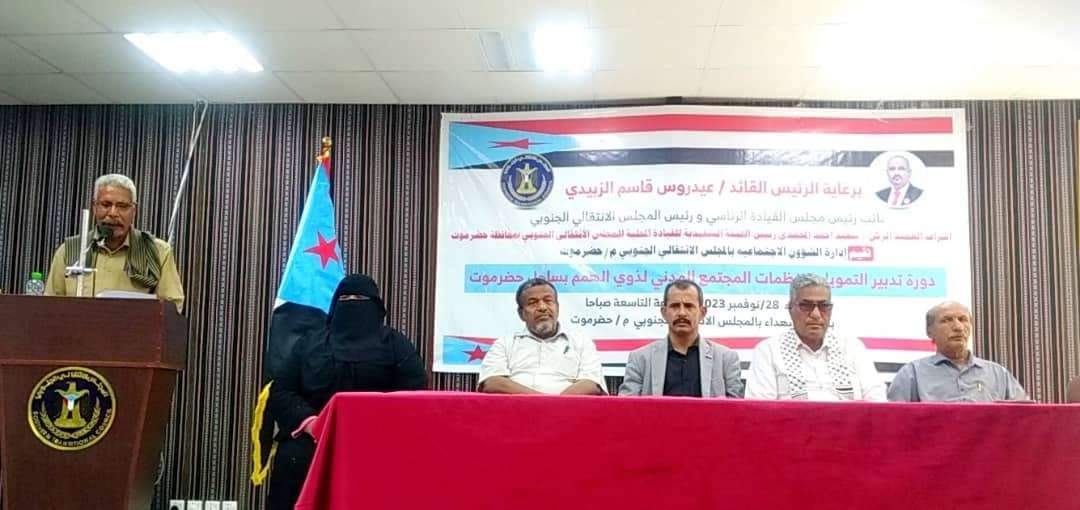 نظمت إدارة الشؤون الاجتماعية بالهيئة التنفيذية للقيادة المحلية للمجلس الانتقالي الجنوبي بمحافظة حضرموت، اليوم الثلاثاء، دورة تدريبية لمنظمات المجتمع المدني والمرافق المهتمة بذوي الهمم بساحل حضرموت، عن كيفية تدبير التمويل لنشاطاتها.