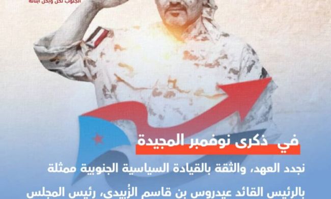 وأكد السياسيون الجنوبيون على أن: “ذكرى عيد الاستقلال الوطني المجيد الـ (56)، من الثلاثين من نوفمبر العظيم، تحل والجنوب يخوض معركة التحرير من أسر، وقيود، وظلم ما تسمى بـ “الوحدة اليمنية المشؤومة”، وكذا في ظل وصول الجنوب بقيادة المجلس الانتقالي الجنوبي إلى مقربة من استعادة دولة الجنوب الفيدرالية كاملة السيادة على حدودها الجغرافية والسياسية المعترف بها دوليًا ما قبل 21 مايو 1990م”.