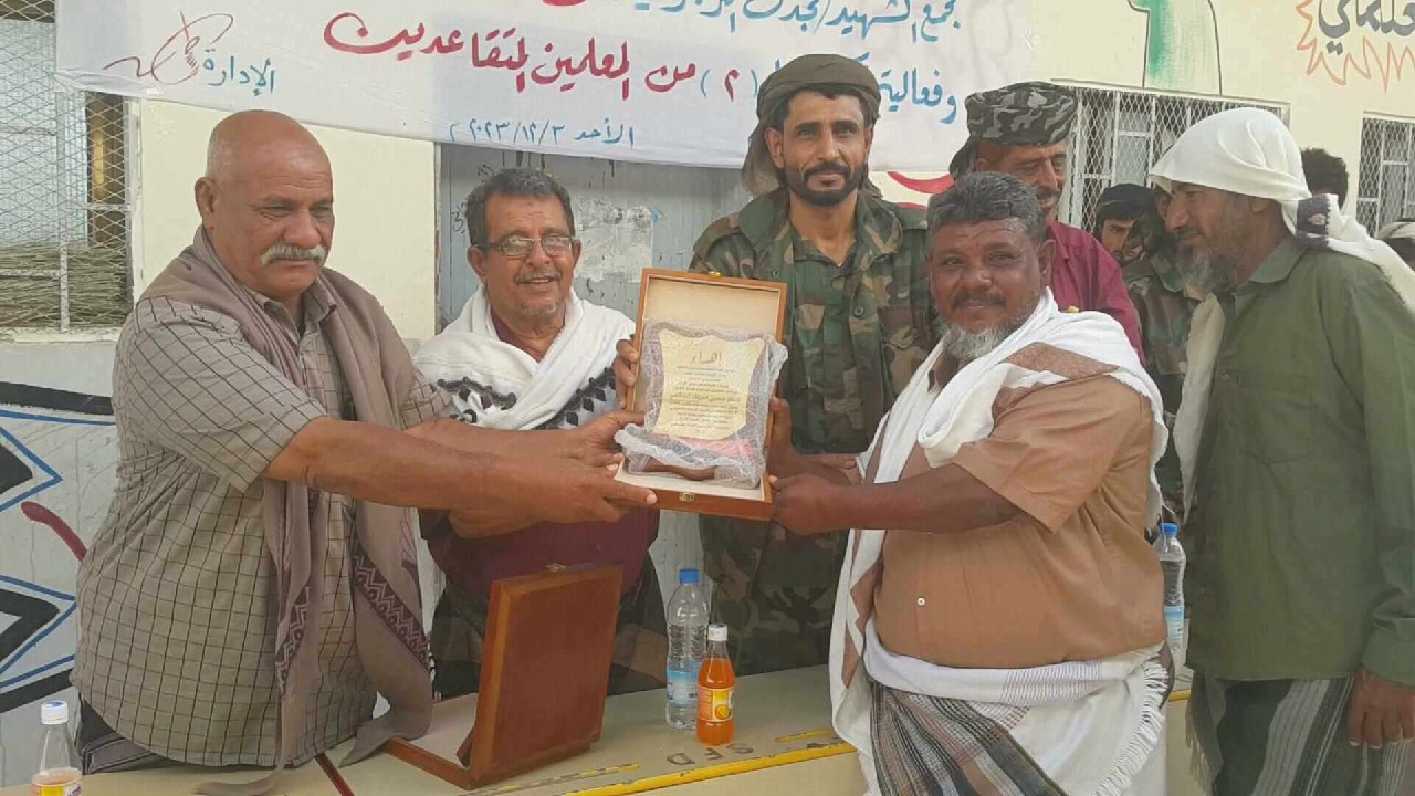واختتمت الفعالية بكلمة المحتفى بهم القاها الأستاذ القدير صالح حسين مبروك استلها بالشكر لله أولا وللاخ العزيز الأستاذ امعبد الخضر كردة مدير مجمع الشهيد لجدل ونائبه الأستاذ ناصر امعبد كردة وهيئة التدريس على هذه الفعالية التي تكللت بتكريمه مع رفيق دربه الأستاذ علي محمد بدر فوجح.. معتبرا هذا النكريم بمثابة وسام على صدره وتاج على رأسه خاصة وأن هذا التكريم قد ازدان بحضور السلطة المحلية بالمديرية ممثلة بالأستاذ جمال صالح علعله مدير عام لودر والشيخ الفاضل صالح الخضر الصاد رئيس الهيئة التنفيذية للقيادة المحلية للمجلس الانتقالي بالمديرية وولدي العميد أبو قحطان الدياني والأستاذ قاسم صالح محمد رئيس قسم التعليم العام بمكتب التربية لودر وعدد من المشايخ والأعيان والشخصيات الاجتماعية بالمنطقة.