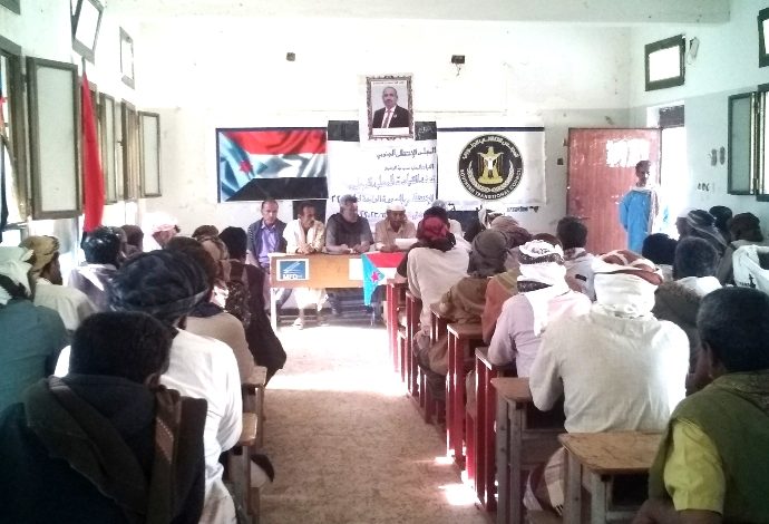 عقدت القيادة المحلية للمجلس الانتقالي مديرية الوضيع محافظة أبين اليوم السبت اجتماعها الدوري الموسع للفصل الرابع في قاعة مدرسة الشهيد باروت في مركز المديرية برئاسة رئيس الهيئة التنفيذية العقيد احمد منصور صلاح لمناضل
