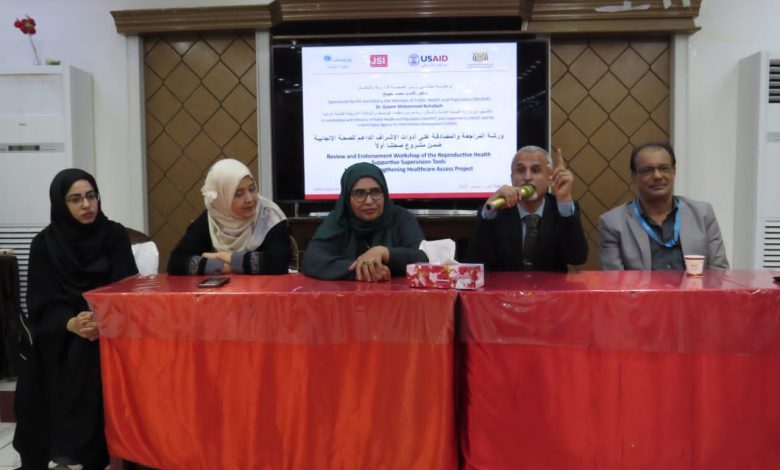 الورشة تهدف إلى مراجعة وتحديث ادوات الاشراف الداعم لخدمات الصحة الانجابية على مستوى الوحدة الصحية والمركز الصحي والمستشفيات والتنسيق مع شركاء الصحة الانجابية وتطوير خطة الاشراف الداعم.