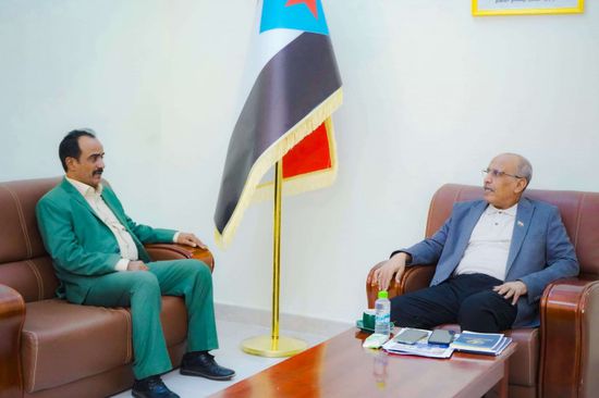 رحب علي الكثيري، رئيس الجمعية الوطنية، بمأمور مديرية خور مكسر، عواس أحمد الزهري، اليوم الاثنين بمكتبه بالعاصمة عدن.