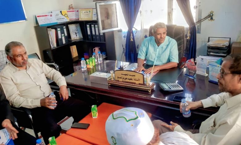 إستقبل الأستاذ بلعيد بن لمير عميد معهد الشحر العالي للعلوم الصحية، صباح اليوم في مكتبه، وفد جامعة العلوم والتكنولوجيا محافظة حضرموت، برئاسة المهندس علوي العيدروس مدير الفرع، يرافقه الدكتور علي باعباد مسؤول برنامج التغذية العلاجية بالجامعة والأستاذ سعيد باحفي المدير المالي والإداري. وخلال الزيارة عقد إجتماع مع إدارة المعهد، ومناقشة الصعوبات التي تواجه التعليم وسُبل حلّها وإجتيازها. والتعرف على إمكانيات المعهد وبرامجه التعليمية عن قرب، وزيارة أقسامه، حيث اُعجب الوفد بما يتمتع به المعهد من مزايا تميزه عن غيره. وإتفق الجانبين على توقيع مذكرة تفاهم وتعاون مشترك.