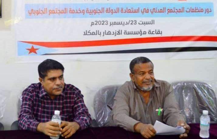 نظمت إدارة الشؤون الاجتماعية بالهيئة التنفيذية للقيادة المحلية للمجلس الانتقالي الجنوبي في محافظة حضرموت، اليوم السبت، ندوة عن دور منظمات المجتمع المدني في استعادة الدولة الجنوبية.