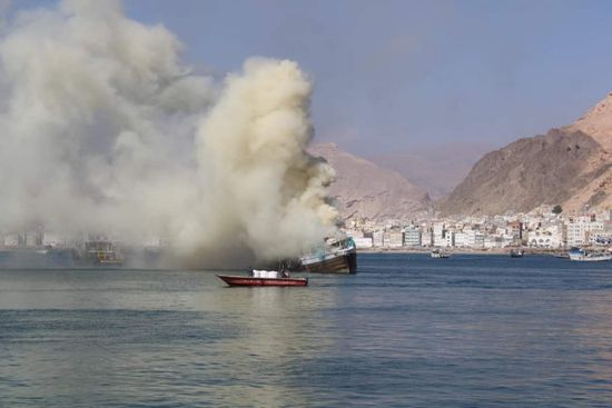وشاركت قوات من خفر السواحل وإدارة الإطفاء في التعامل مع الحريق وإبعاد الساعية المحترقة عن رصيف الميناء والسيطرة على الحريق.