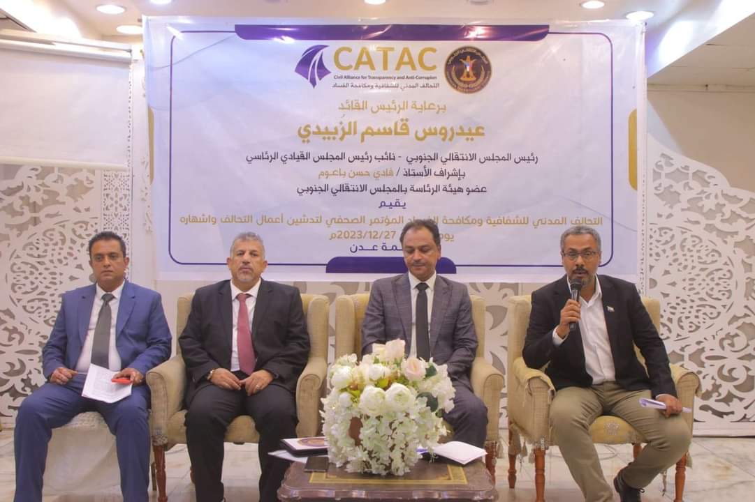 أُشهِرَ، اليوم الأربعاء بالعاصمة عدن، التحالف المدني للشفافية ومكافحة الفساد، بحضور الأستاذ فادي حسن باعوم و الأستاذ عبدالناصر الجعري عضوا هيئة رئاسة المجلس الانتقالي الجنوبي.